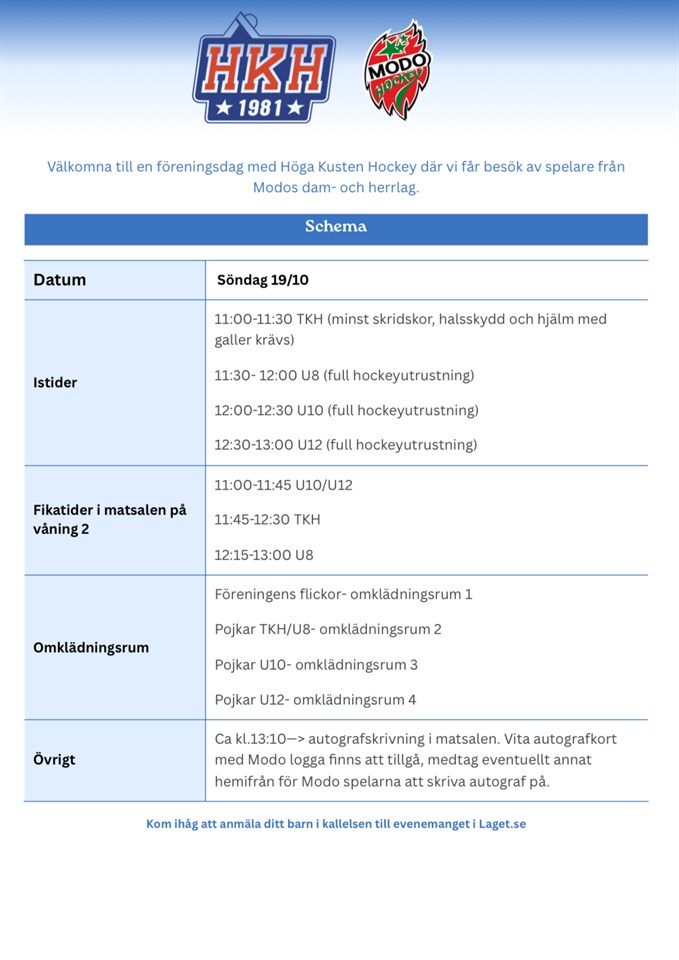 | Friåkning med puck och klubba | 30 okt, 12:30 |