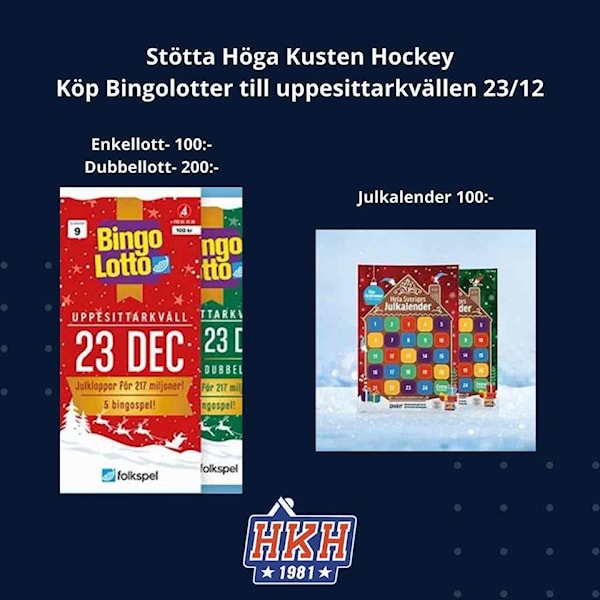 Nu säljer vi Bingolotter till uppesittarkvällen 23/12 och julkalendrar med fina vinster.